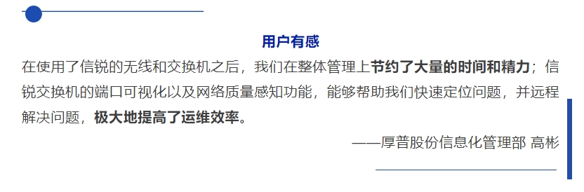 厚普股份作为清洁能源行业的领先者,此次携手信锐进行无线网络改造,积极实现自身信息化升级。在经过与信锐长时间的合作后,厚普股份对于信锐的解决方案做出了较高评价,并决定与信锐进行深度合作签约(图四)。