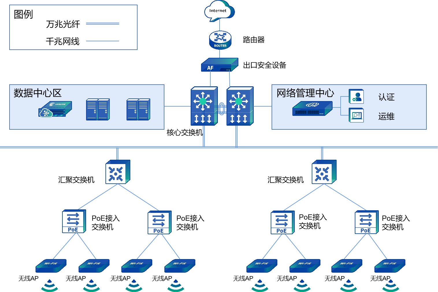 信锐的交换机和无线产品自带完善的认证功能,大幅降低了厚普股份的建设成本,给用户提供安全易用的有线、无线认证方式。安视交换机独特的安全属性及终端识别快速帮用户解决了内网攻击的问题,保障了用户的内网安全(图一)。