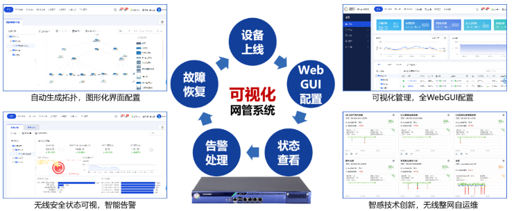 信锐无线网络管理平台助力厚普股份实现有线无线网的统一管理运维,在保障运维效率的同时降低了用户前期的投入成本。网络管理平台可提供精确到具体设备界面的可视化管控,所有设备均可通过网络控制器进行统一管控(图三)。